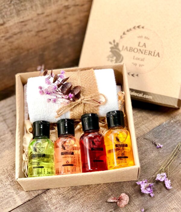 Este Kit contiene: Jabón de manos liquido x 30ml x 4 unidades, toalla facial bordada.