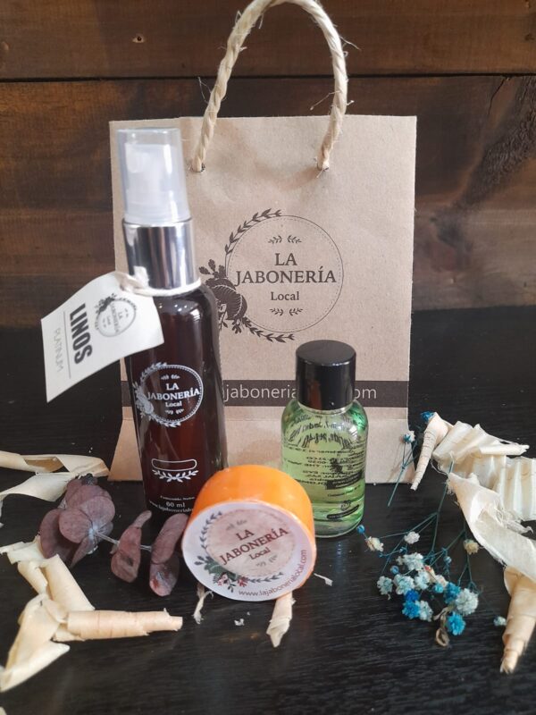 Kit especial para regalo, este contiene, Jabón glicerina x 20gr, agua de linos de 60 ml, jabón liquido manos x30ml.