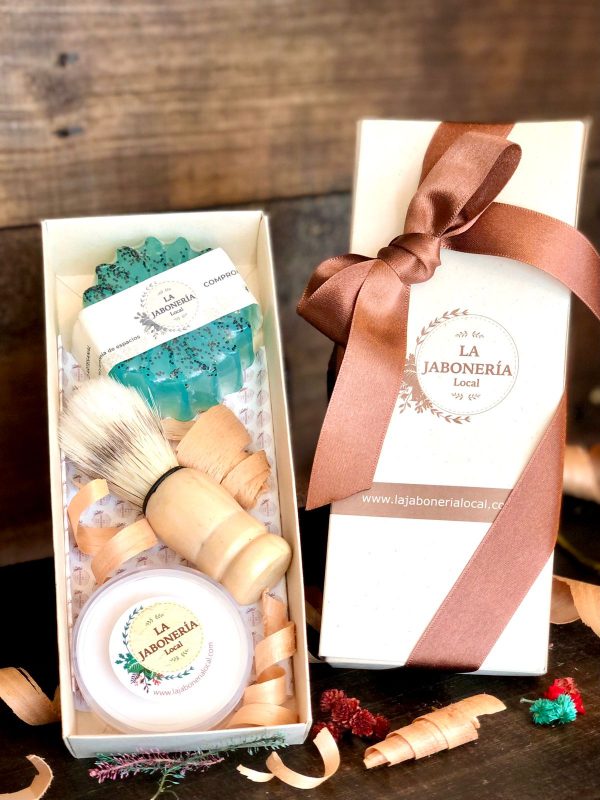 Kit especial para regalo, este contiene, jabón de menta 80gr, jabón de afeitar pomera de 40gr, brocha de afeitar.
