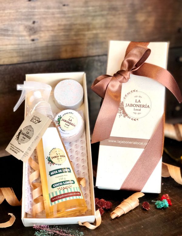 Kit especial para regalo, este contiene, pompas de lavanda 2 und x 20gr, agua de linos Coco limón.