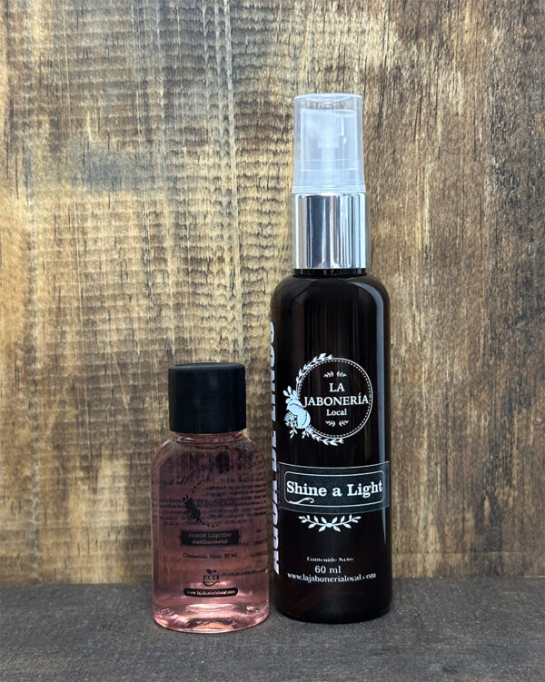 kit contiene, agua de lino x 60ml, jabón glicerina x 30ml